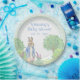 Cute blue Rabbit in garden with greenery and flowers done in soft watercolors. Blue & green gingham background. Soft trees & flowers surround this sweet bunny graphic. Just adorable.