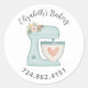 A cute blue cake kitchen stand mixer with flowers decorates this sticker. Personalize it with your name and phone number. Designed for you by Blackberry Boulevard.
