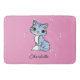 Cute blue cat on pink custom name bath mat