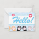 Cute Blue Cat Paws Up Hello Lined Mini Note Card