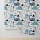 Cute Blue Dinosaur Modern Kids Pattern Wallpaper