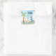 Cute Blue Dinosaur Palm Tree 1st Birthday Square Sticker