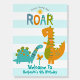 “Welcome and stomp, chomp and roar”. Proudly welcome every guest of your son’s dinosaur birthday party! Display this stunning, modern, stylish, personalized foam core poster board to add to his special day. A whimsical, playful visual of a cute, bold, kawaii, turquoise blue brontosaurus and a dusty, orange and green t-rex join fun, handwritten typography. Personalize with your child’s name, birthday number, and/or special message. Available in 7 standard sizes from 10”x8” to 36”x24”. This welcome poster board is guaranteed to set just the right tone for his birthday bash! Matching invites, napkins, plates, stickers, and other goodies are also available in this cool and unique collection. Guaranteed to add a stylish touch to the celebration!