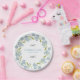 Cute light blue watercolors flowers wreath, customizable wedding party paper plate.