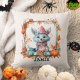 Cute Blue Fox Orange Pumpkin Kids Halloween Throw Pillow