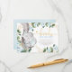 Adorable jungle-themed books for baby card featuring a sweet baby elephant, chic blue roses and elegant watercolor greenery in green and gold. Matching items available in our store!