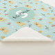 This cute kids sherpa blanket features a blue beautiful golden retriever puppy floral illustration pattern, with flowers and tennis balls, with a place for you to add a name in a modern, minimalist font. A fantastic gift for any dog or dog lover, perfect for a dog loving child, or to celebrate the arrival of a new pet!