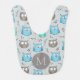 Cute Blue Grey Owl Pattern Monogram Baby Bib
