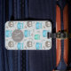 Cute Blue Grey Owl Pattern Monogram Luggage Tag