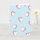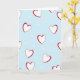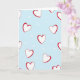 This design shows a light sky-blue background covered with a repeating pattern of hearts. Larger white hearts are scattered across the card, each outlined in red with slightly uneven lines that make them feel warm and human. Between them, many smaller white hearts fill the open spaces like little touches of love. There’s no character scene or objects—just a calm, romantic pattern that feels sweet and steady. There is no text on the card, so the heart design stays front and center without any lettering. The mix of cool blue, bright red, and soft white keeps it simple, gentle, and easy to enjoy. It’s a lovely choice for a partner, friend, or anyone you care about 💕❤️.