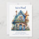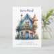 Cute whimsical house illustration new home moving announcement card.