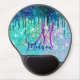 Cute blue iridescent unicorn faux glitter monogram gel mouse pad