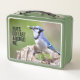 Cute Blue Jay Songbird on Treestump Metal Lunch Box
