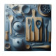 Cute Blue Kitchen Utensils Aesthetic Wallpaper Ceramic Tile