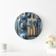 Cute Blue Kitchen Utensils Aesthetic Wallpaper Large Clock