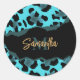 Cute Blue Leopard Print Classic Round Sticker