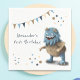 Cute first birthday paper napkins with a monster illustration to complement your birthday party. Happy monster theme.