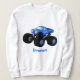 This cute blue monster truck is ready for racing action. High octane race trucker fun drawn in happy cartoon style!