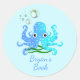 Cute Blue Octopus with Bubbles Nautical Book Plate