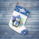 Cute Blue Penguin Candy Cane Large Christmas Stocking