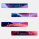 Charming code name labels featuring a delightful blue, red, and purple gradient color scheme. These labels possess an endearing quality due to their cute and vibrant appearance, showcasing a smooth transition between blue, red, and purple hues.