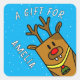 Cute Blue Reindeer Kid`s Name Christmas Gift Square Sticker