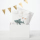 This cute and modern boys' baby shower favor bag design features a blue shark cartoon, with fish, bubbles, seaweed, waves, and sand, and can be personalized with the parents' names and date of your party. The perfect adorable sea and ocean-themed addition to your co-ed couples' baby shower.