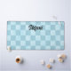 Modern pretty design features pastel blue sky retro style checkerboard pattern with a modern rough calligraphy font for her name. this pastel beach and blue sky desk mat will be perfect back-to-school gift for your daughter.