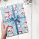 Very cute Christmas wrapping paper with a pattern of snowflakes and snowmen with candy canes. Adorable to gift wrap the presents of the little ones. Illustrated and designed by Patricia Alvarez.