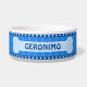 Dog Paw and Bone © Sunny Mars Designs. Cute, stylish custom name customizable large pet dog bowl featuring a gorgeous blue stripes and polka dots design with dog paw and dog bone to place your dog's name on it. Perfect gift for man's best friend. Other colors available.