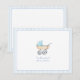 Cute Blue Stroller baby boy nursery Flat Thank You Card