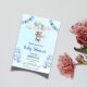 Cute Blue Teddy Bear Balloons & Clouds Baby Shower Invitation