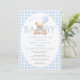 Cute Blue Teddy Bear Gingham Bow Baby Boy Shower Invitation