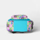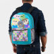 A blue backpack full of toys. Toys in colorful boxes on the front bag + sides and bigger versions of the toys at the back. All toys from the books of "The Underground Toy Society"!