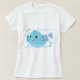 brighten your wardrobe with this charming womens blue tropical fish t-shirt featuring a whimsical cartoon design. the sweet round fish with its pink floral accents and yellow eyes creates a playful and artistic look perfect for casual summer days or beach vacations. this soft and comfortable graphic tee is a great choice for ocean lovers and anyone who appreciates cute aquatic characters and vibrant marine life art.