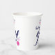 This cute paper cup for a baby girl shower showcases a charming combination of fuchsia pink and navy blue. The typography "Baby girl" is elegantly displayed in navy blue, while a delightful fuchsia hot pink whale playfully sprays hearts. To add a personal touch, the cup also includes the name of the mother-to-be, making it a perfect addition to any baby shower celebration.