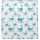 Minimalist whale pattern shower curtain with playful ocean waves and water splashes in soft blue tones. Clean, modern, and calming design with a cute marine vibe. Ideal for kids, ocean lovers, and nautical theme fans.
