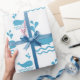 Minimalist whale pattern wrapping paper with playful ocean waves and water splashes in soft blue tones. Clean, modern, and calming design with a cute marine vibe. Ideal for kids, ocean lovers, and nautical theme fans.