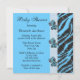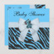 Cute Blue Zebra & Animal Print Glitter Baby Shower Invitation