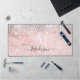 Cute blush pink faux silver glitter monogram desk mat