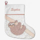 Cute Blush Pink Glitter Sloth Name Large Christmas Stocking