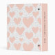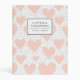 A cute hearts theme mini binder. Organize your taxes, recipes, notes and so much more with this customizable mini binder. It features a pattern of blush pink hearts and black confetti dots. Personalize by adding your name and a short phrase. This pretty hearts binder will be perfect as a personalized gift.