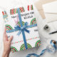 Make your gifts stand out under the tree with this trendy Boho Christmas Rainbow Wrapping Paper. The design features festive rainbows detailed with buffalo plaid, leopard print, and cute holiday icons, offering a modern twist on traditional holiday decor. What makes this wrapping paper truly special is the personalization. The bold Gothic-style text is fully editable, allowing you to easily replace "Merry Happy Christmas" with your own greeting or swap "KLALA" for your family name using the "Personalize this template" button. Whether for kids or adults, this custom touch adds a heartfelt feel to your presents. Wrap your love in this unique, stylish pattern!