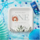 Cute Boho Lion Foliage 1st First Birthday Party Paper Plates