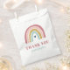 Cute Boho Rainbow Pink Birthday Favor Bag features an adorable duo of rainbow in shades of pink, blush, mustard, aqua and navy, along with modern calligraphy.