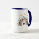 Drink your morning coffee in this cute personalized Rainbow mug with your favorite dog breed, name or anything to make it "you". Customize with your favorite font and color. The Rainbow is blue, mauve, and tan colors with dog paw prints and heart. The design is by me, with the dog lover in mind.