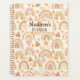 Personalized name and monogram planner with a pattern of watercolor painted modern boho rainbows in earthy neutral and terracotta tones.