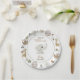 Create the perfect gender neutral baby shower table setting with this adorable boho safari animals paper plate design featuring hand painted jungle animals patten, including a sloth, giraffe, lion and elephant, the elephant featuring in center with hand lettered script typography. Copyright Elegant Invites, all rights reserved.