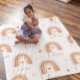 Give the perfect personalized gift with this cute modern baby blanket that features an illustrated watercolor rainbow pattern in earthy colors over a white background with your baby's name in beautiful script typography. To customize this item, click "Personalize" and add the name. If you need help with customization please email me at ybnormalone@gmail.com. Please see other matching items in our store www.zazzle.com/CuteKidStuff. Thanks for stopping by. Karen Hall
