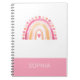 Cute Boho Watercolor Rainbow in Pink personalized Notebook
